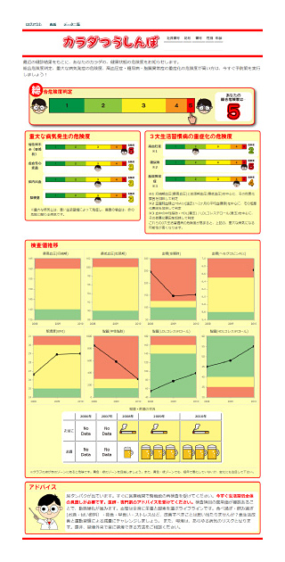 健診データをもとに個人別の健康情報シート「カラダつうしんぼ」を作成。リスク把握や行動変容のきっかけとなる個別評価ツールとして活用できます。